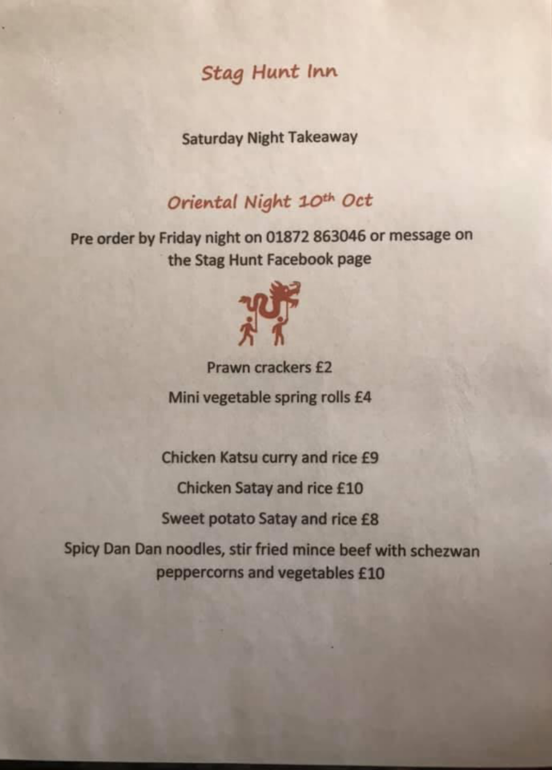 Food - Sat 10th October - The Stag Hunt Inn